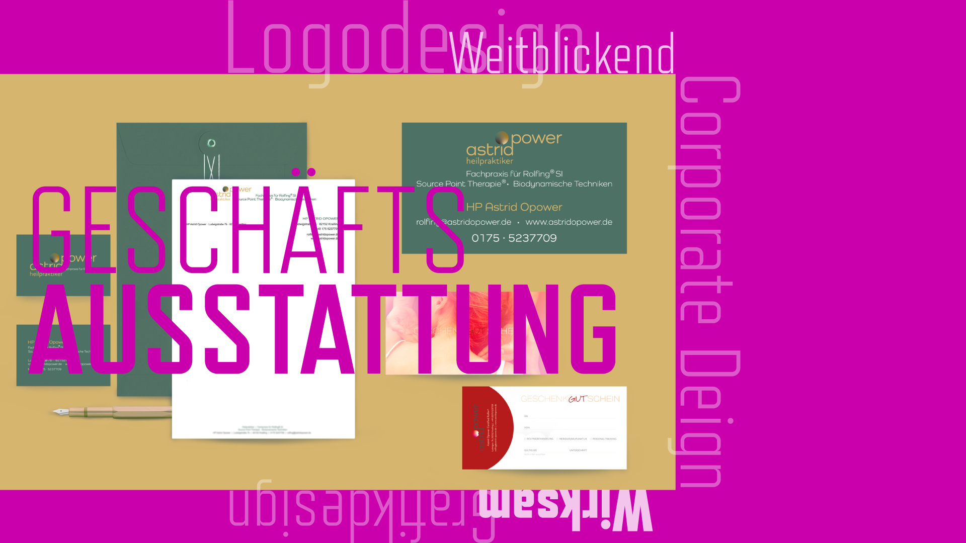 Vom Logodesign über Geschäftsausstattungen, Bildsprache für Websiten und Printmedien konzipiere und kreiere ich alles aus einer Hand.
