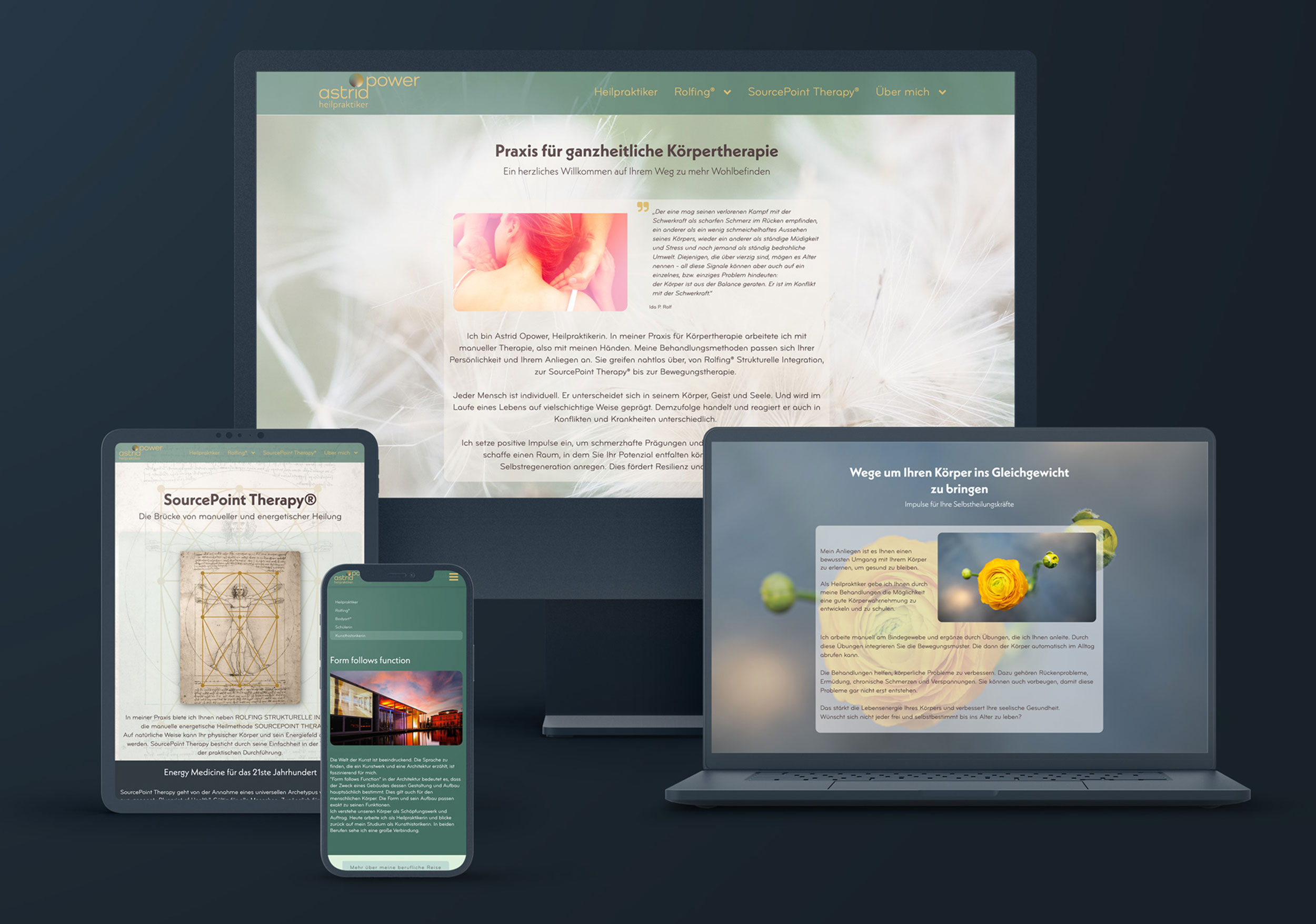 Ende 2021 gestaltete ich das erste Weblayout für die Rolferin Astrid Opower, aus Krailling bei München. Drei Jahre später entwarf ich ihr Webdesign erneut und setzte dieses auch selbst um. Der Grund dafür war: Astrid Opower erweiterte ihr Angebot zur Heilpraktikerin.
